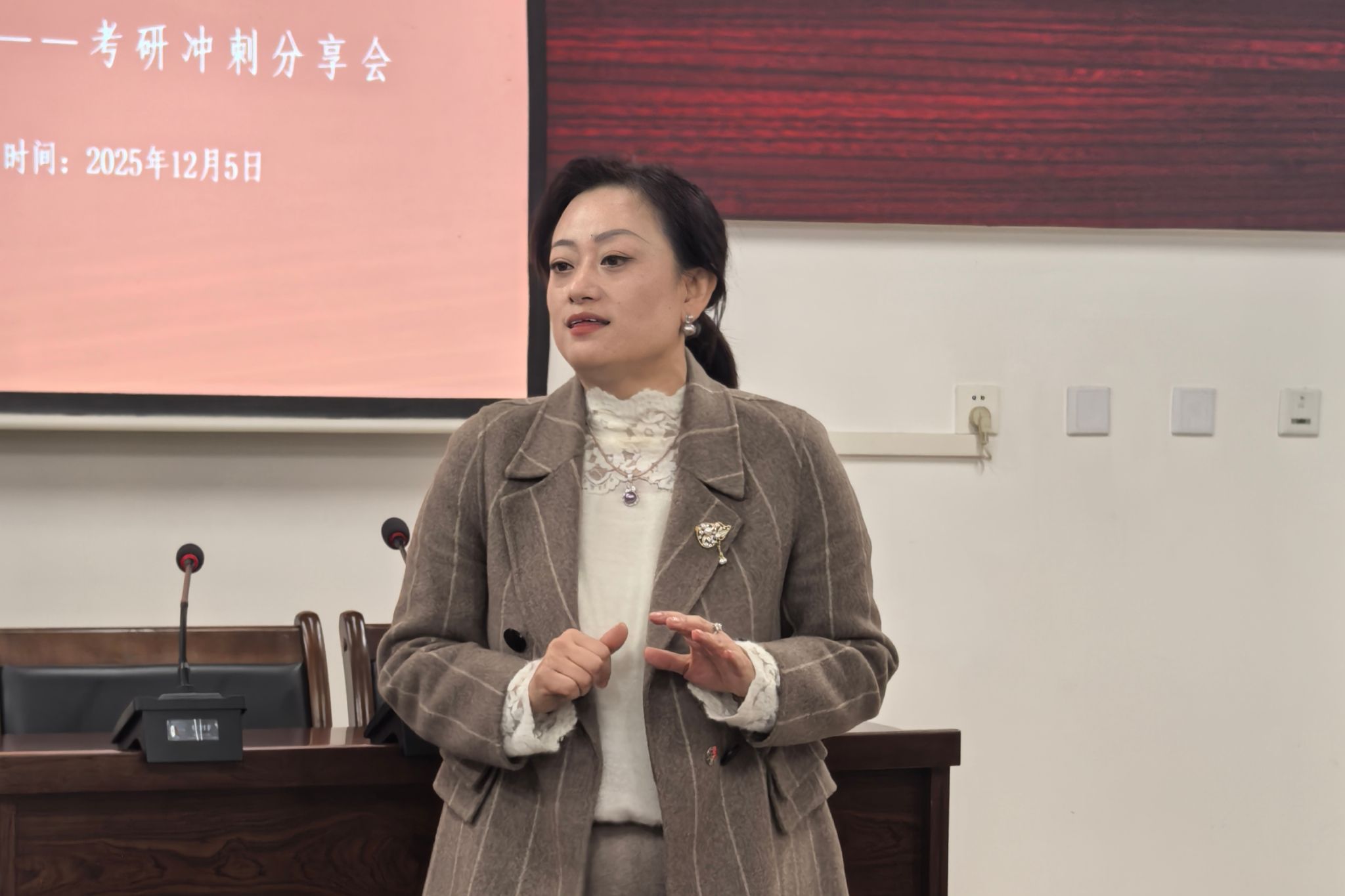 会上,邓小明为同学们加油鼓劲,希望同学们树立必胜信念,顽强拼搏、坚持到底。随后,杨茂林老师就如何备战考研提出建议:一是结合个人情况选定考研院校;二是制定合理的备考计划;三是采用各学科交叉复习的方法。同时,杨老师还交代了考试期间应饮食清淡,鼓励同学们以积极乐观的心态面对考研。最后,刘正丽和宋美仪为考研同学送上暖心礼品,强调了答题过程中的注意事项并送上祝福,祝愿同学们都能实现自己的考研梦想。