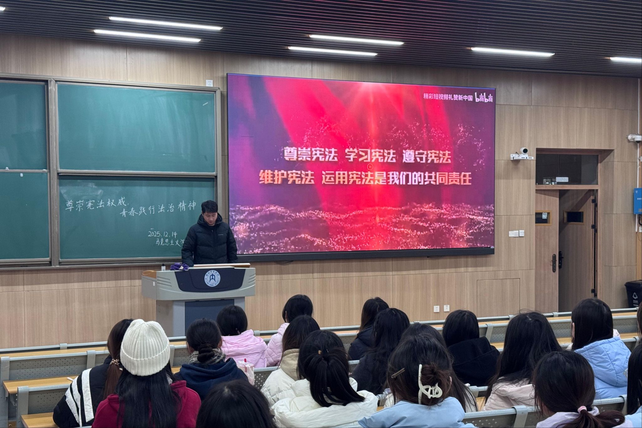 本次活动采用线上线下相结合的方式,围绕三大核心主题展开:首先以“法治精神践行”为核心,各班主任组织同学们围绕宪法主题开展专题学习,进一步加深了同学们对法治精神的理解,明晰青年肩负的法治责任;其次以“和平信念传承”为核心,各班通过历史研讨、故事分享等形式回溯历史,引导同学们厚植铭记历史、珍爱和平的家国情怀,在思想碰撞中凝聚青春共识;最后以“红色使命担当”为核心,各班围绕纪念“一二·九”运动开展了系列主题活动,带领同学们重温那段救亡图存的峥嵘岁月,激励同学们以青春之力扛起时代使命,用实际行动诠释青年担当。